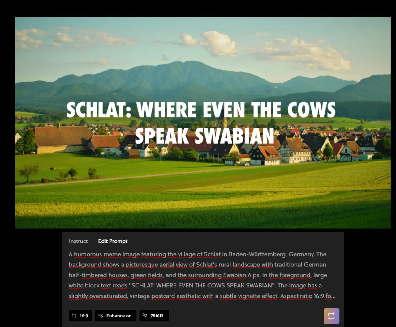 Prompt: „Meme über das Dorf Schlat in Baden-Württemberg“