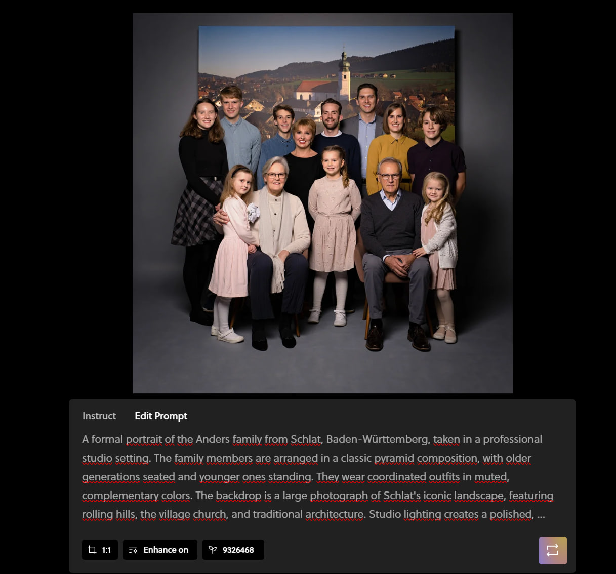 Klar, ab und zu stolpert man noch über Rechtschreibfehler oder minimale Unstimmigkeiten, aber dank der "Recreate"-Funktion kannst du jedes geile Bild nochmal in vier neue Varianten verwandeln und das funktioniert richtig nice! ❤️