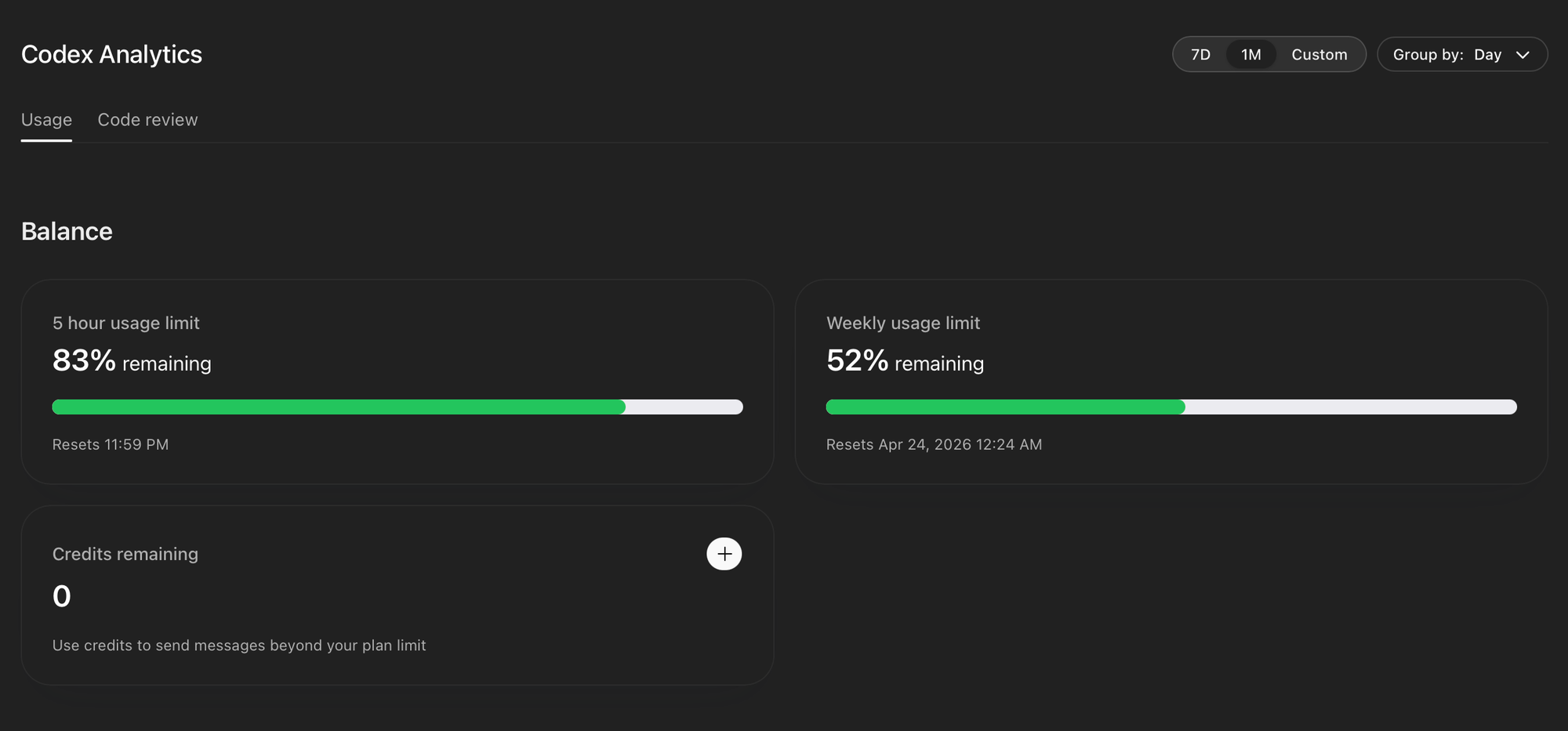 In meinem Fall hing da Codex ĂĽber Auth dahinter, mit einem recht interessanten Token-/Usage-System: