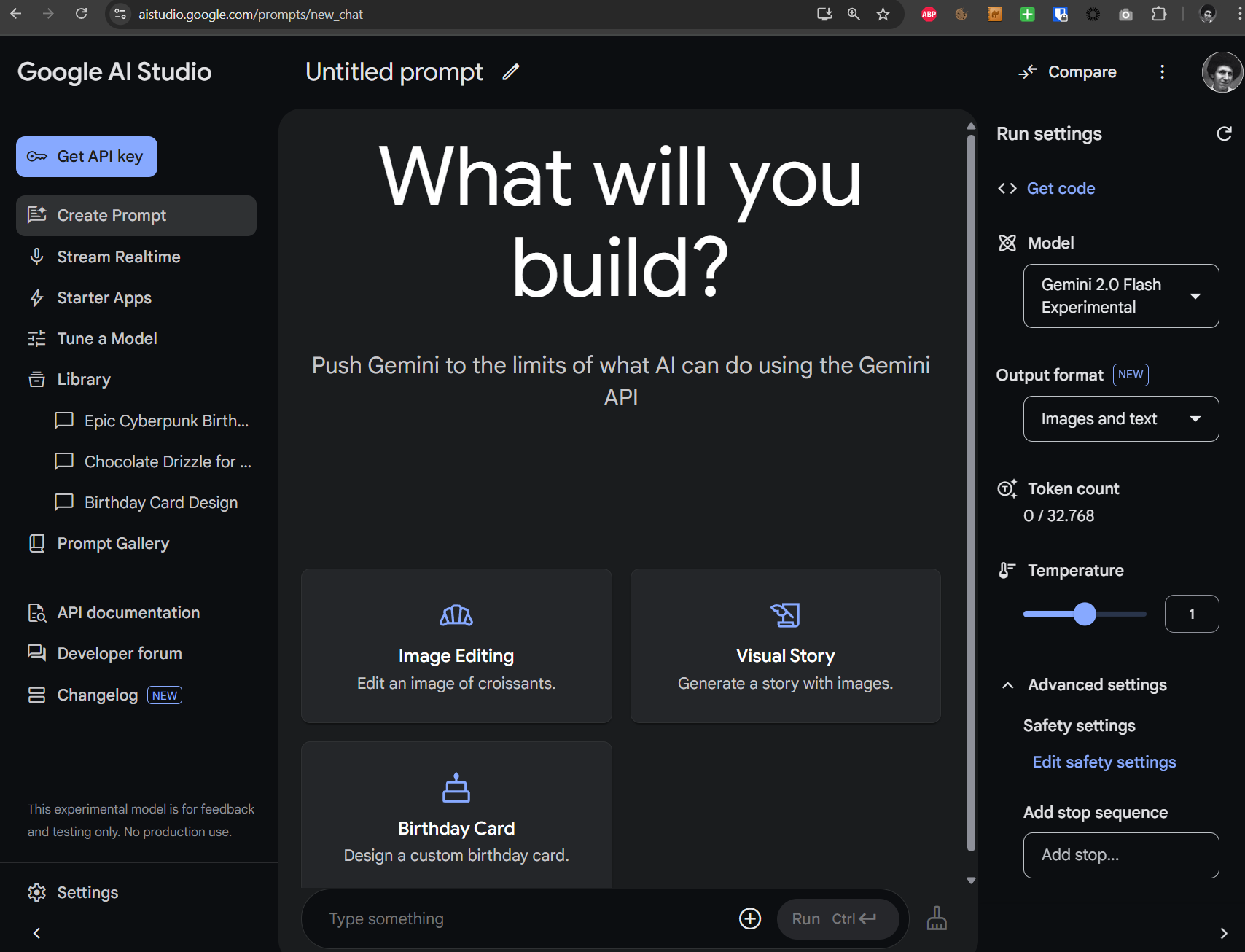 Im Google AI Studio gibt es drei Beispiele ('Edit an image of croissants', 'Generate a story with images' und 'Design a custom birthday card'), die faszinierend gut und schnell funktionieren.